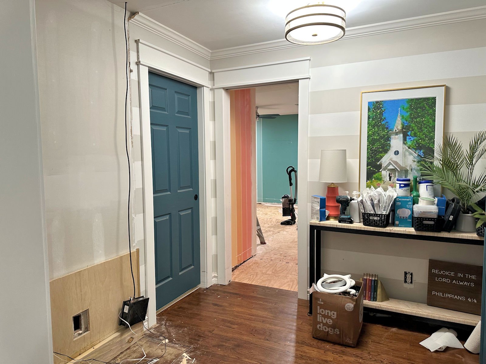 I’ll let y’all know the way it goes, however within the meantime, I’ll depart you with one final take a look at this good, open view of our soon-to-be closet and laundry room on the left, and our soon-to-be open walkway to the bed room on the suitable.