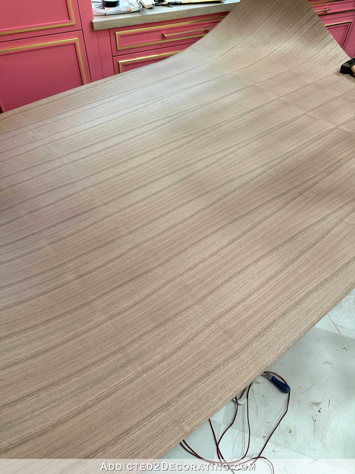 For my desk, I made a decision to do a white base with the walnut high. I ordered the walnut veneer, and it arrived yesterday. I’m all the time so anxious to see the veneer and see what sort of grain sample it has on it. This one has some very stripy grain patterns in it, however I believe as soon as it’s oiled, it’ll look very fairly.
