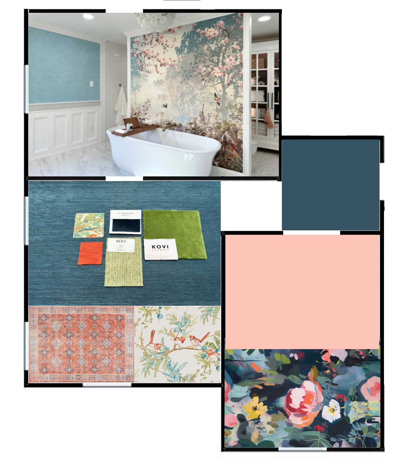 The partitions might be teal grasscloth above white wainscoting, and the draperies might be darkish teal velvet. I’ll add splashes of inexperienced, orange, and teal all through the delicate furnishings and equipment.