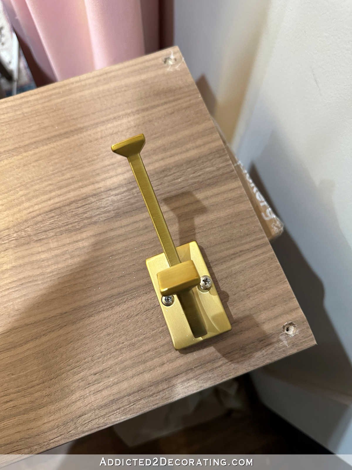 After which I began screwing on the hooks. After the primary one was up, I began questioning this entire plan. I wasn’t loving it. However I made a decision to press on, and I put up the second. It didn’t get any higher for me.