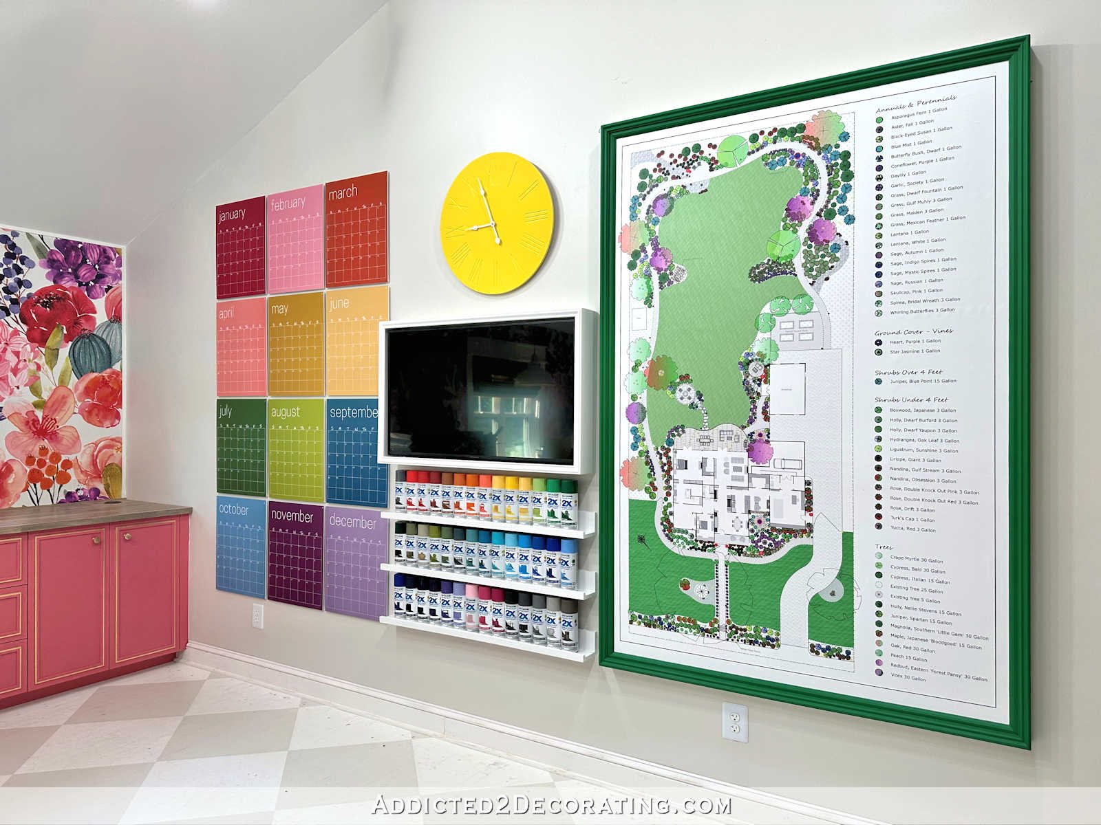 First, let me remind you what the wall seemed like on Friday after my day of fails. Eleven of the twelve months of my calendar had fallen off the wall. I had made my TV body method too massive. I needed to do a makeover on the clock, however I couldn’t work out what I needed to do. And the cabinets have been giving me issues.