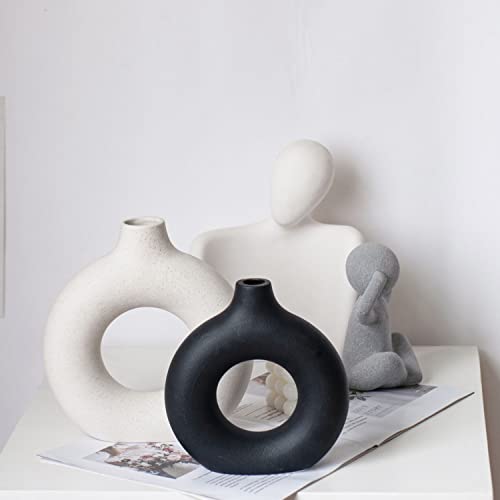 Donut Design: The decorative vase is designed with a unique donut shape that differs from the traditional vase. The hollowed out center makes it not only a flower vase, but also a work of art.