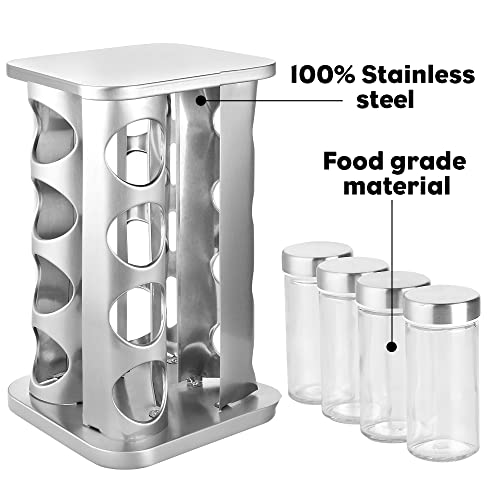 Countertop Revolving Spice Rack, 16-Jars Stainless Steel Spice Rack Organizer, Square Carousel Spice Rack Tower, Seasoning Storage Organization for Kitchen Home Dried Herbs