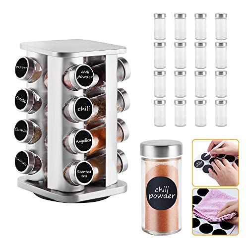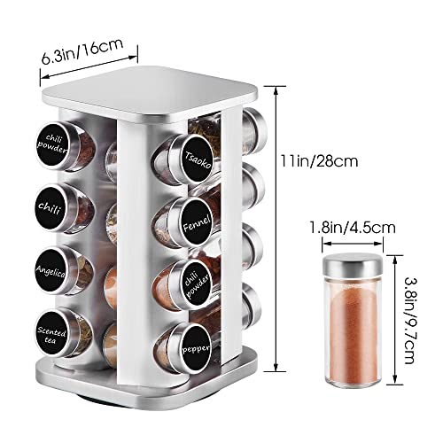 Specification: Countertop Revolving Spice Rack, 16-Jars Stainless Steel Spice Rack Organizer, Square Carousel Spice Rack Tower, Seasoning Storage Organization for Kitchen Home Dried Herbs