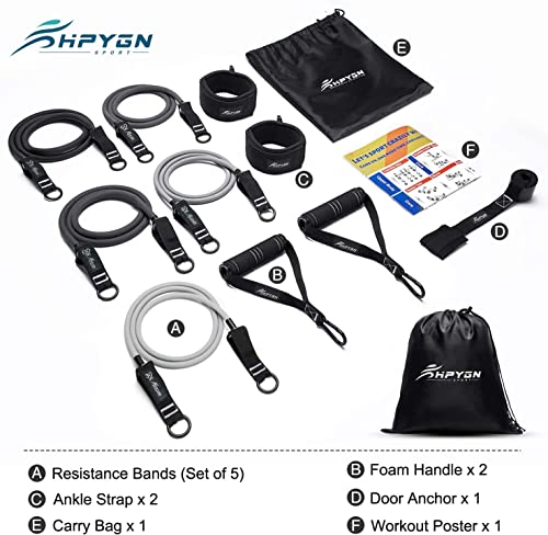 HPYGN Resistance Bands Set, 5 Tube Exercise Bands with Handles, Door Anchor, Legs Ankle Straps, Fitness Bands Resistance Set for Home Workout, Muscle Training, Yoga, Physical Therapy, Home Gym