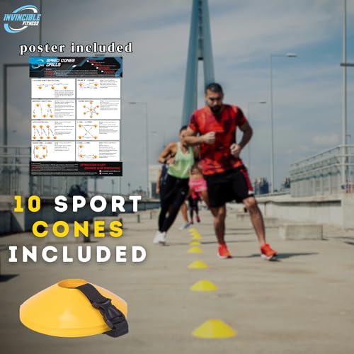 Specification: Invincible Fitness 20ft. Agility Ladder Set – Includes 10 Cones, 5 Loop Bands, 4 Hooks, Resistance Parachute, Jump Rope, & Carry Bag – Improves Power, Speed, Strength, Weight Loss & Physiotherapy
