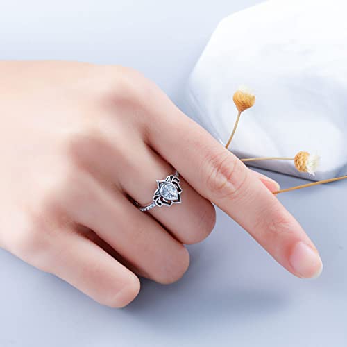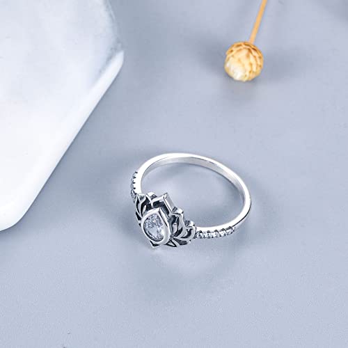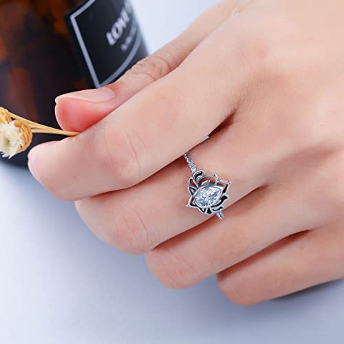 LOVECOM 925 Sterling Silver Lotus Flower Ring with Cubic Zircon Luxurious Marriage ceremony Engagement Dainty Rings for Ladies Women Jewellery Presents Excessive Polish Tarnish Resistant Consolation Match Marriage ceremony Band Ring Measurement 5-12 Mom’s Day Presents