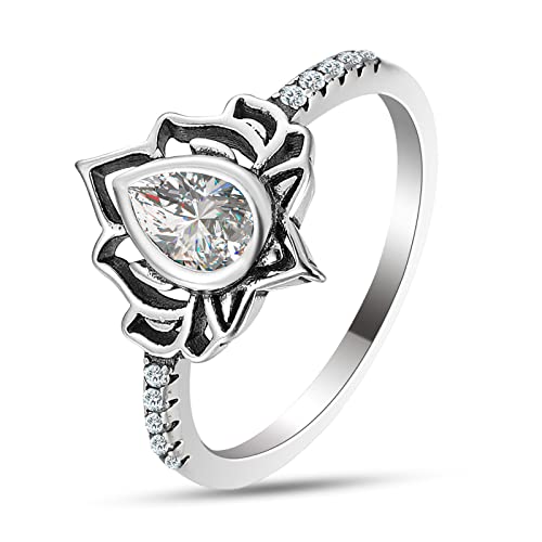 Specification: LOVECOM 925 Sterling Silver Lotus Flower Ring with Cubic Zircon Luxury Wedding Engagement Dainty Rings for Women Girls Jewelry Gifts High Polish Tarnish Resistant Comfort Fit Wedding Band Ring Size 5-12, Non-Precious Metal, No Gemstone