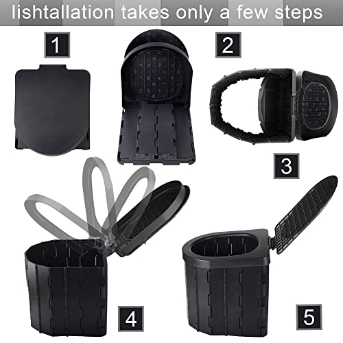 Portable Toilet for Camping, SFSUMART Foldable Camping Toilet for Adults, Emergency Potty, 12pc Toilet Bags for Outdoor, Car Travel, Hiking, Boat (Black Cover)