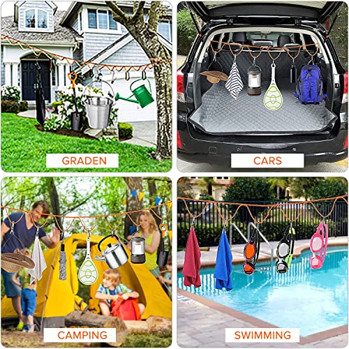 【EASY ASSEMBLY & HANGING】- The first band has 12 loops to maintain gadgets from sliding to the middle. Consists of 12 hooks and 5 clothedpins, could be hung kitchen cookware, backpacks, clothes, shoe,tent and so on