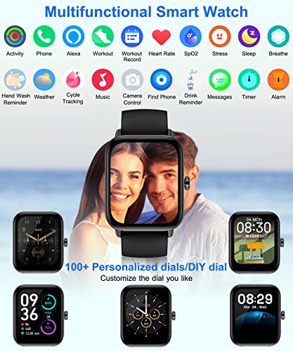 Smart Watch for Men Women with Bluetooth Call,Alexa Built-in,1.8″ DIY Dial Fitness Tracker with Heart Rate Blood Oxygen Sleep Monitor 100 Sports Modes IP68 Waterproof Smartwatch for Android iOS(Black)