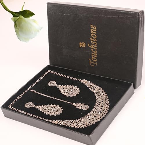 Specification: Touchstone Hollywood Glamour Diamond Look Rhinestone Crystal Grand Bridal Designer Jewelry Hasli Necklace Set In Gold And Silver Tone for Women., Metal, No Gemstone