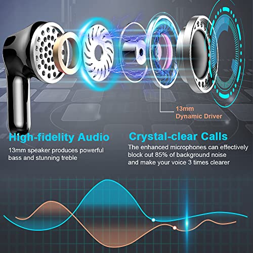 2023 Leading Bluetooth 5.3 and One-Step Pairing: Adopting Bluetooth V5.3 and dual-channel transmission, wireless earbuds support HID HSP HFP A2DP AVRCP, specially tuned for stable signals, lower latency, and faster connection which offer you an unparalleled audio experience. Taken from the charging case, bluetooth earbuds will be paired with each other automatically, and just hit on bluetooth list i13 on your device to connect, avoiding complex operations and saving waiting time.