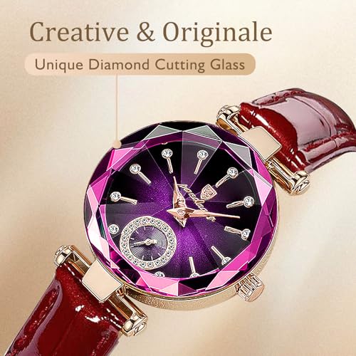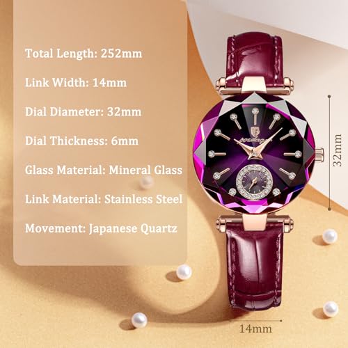 Specification: Womens Watch Jewelry Creative Luxury Elegant Leather Band Ladies Watch Jewelry Gift for Wedding Anniversary Birthday Round Quartz Analog Wrist Watch for Women Montre Femme Cadeau